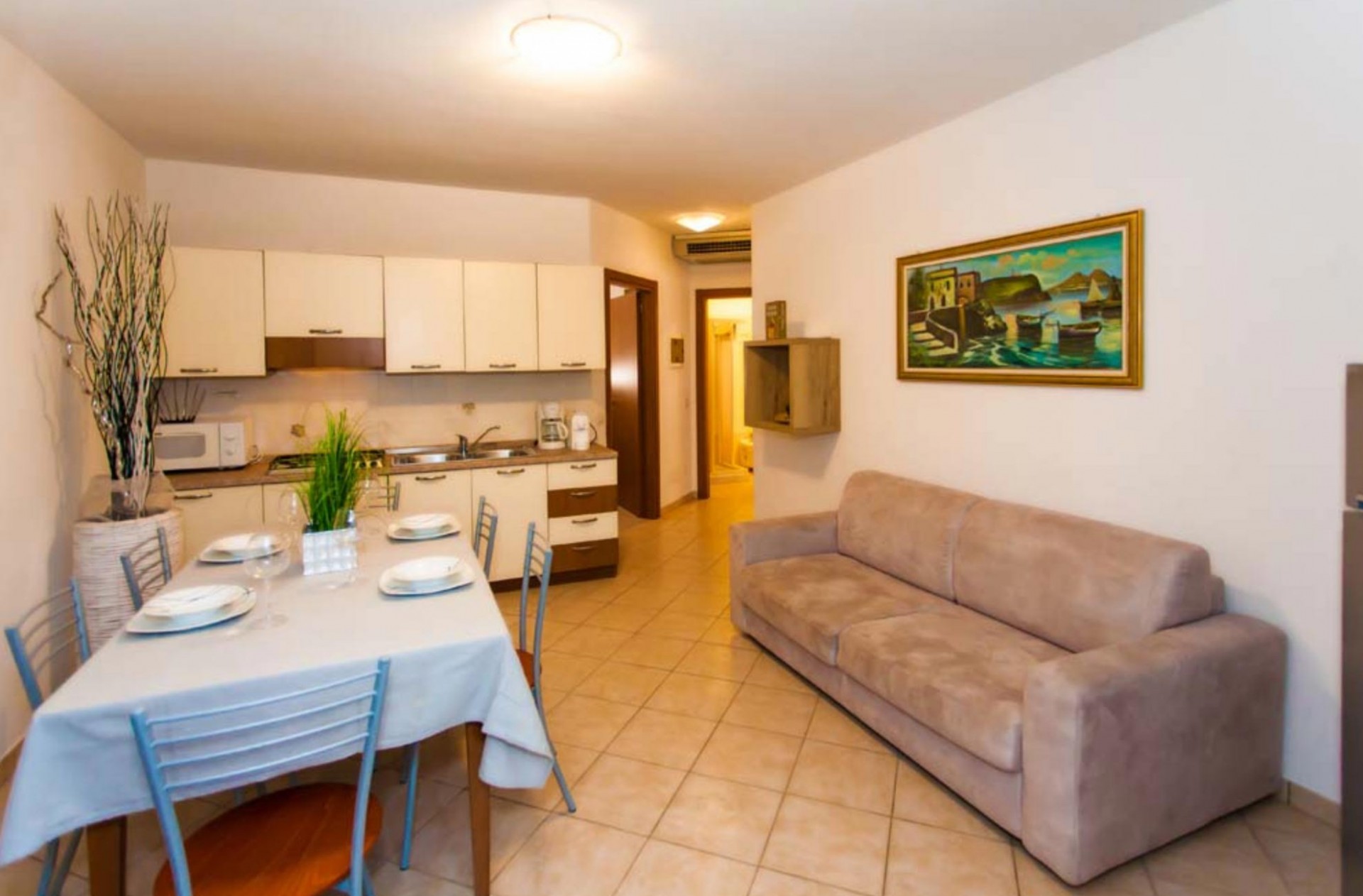 Soggiorno con divano letto per due persone,